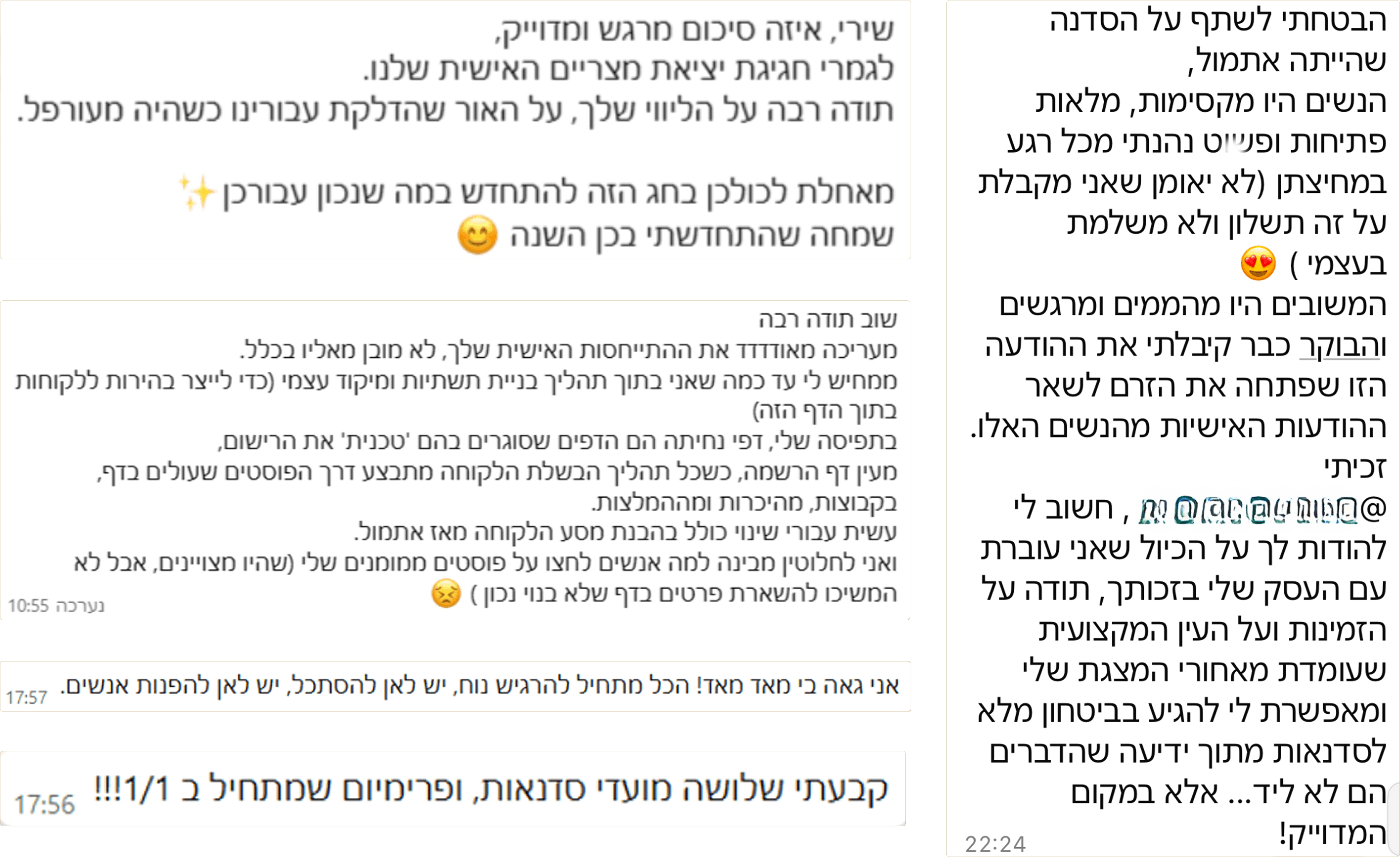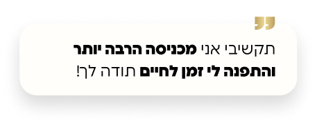 הכל השתנה אצלי – לא רק ההכנסות, אלא בעיקר האופן שבו אני עובדת. במקום לשחוק את עצמי בשיחות חוזרות, גיליתי איך אפשר להשקיע זמן מרוכז אחד ולהכניס מאות לקוחות שוב ושוב.